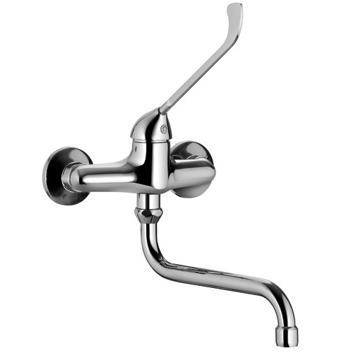 Single lever sink mixer, wall munting, with swivel spout.